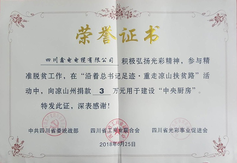 “沿着总书记足迹·重走凉山扶贫路”活动捐赠证书